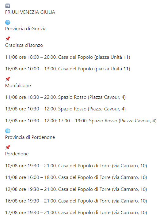 In #FriuliVeneziaGiulia potete firmare per @unione_popolare@twitter.com negli appuntamenti qui riportati. Facciamo anche noi la nostra parte.