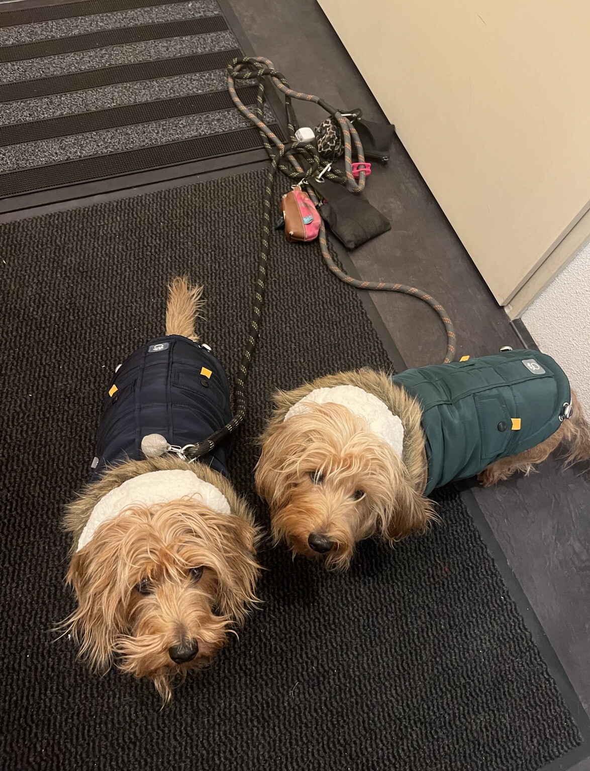 Evening walk while it’s kinda freezing. The dogs are not amused.