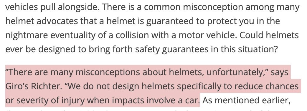 When you realize that bicycle #helmets were not designed to protect you when you're hit by a car, having #ProtectedBikeLanes seems even more important.