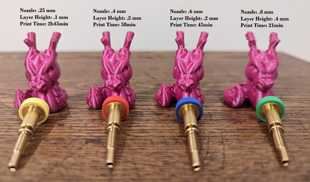 Now that I am back up and printing again, I had fun changing @E3DOnline Revo Six nozzles quickly to print the Cali Dragon with all each nozzle.