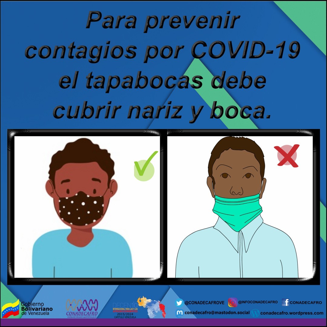Para prevenir contagios por COVID-19, el tapabocas debe cubrir nariz y boca.