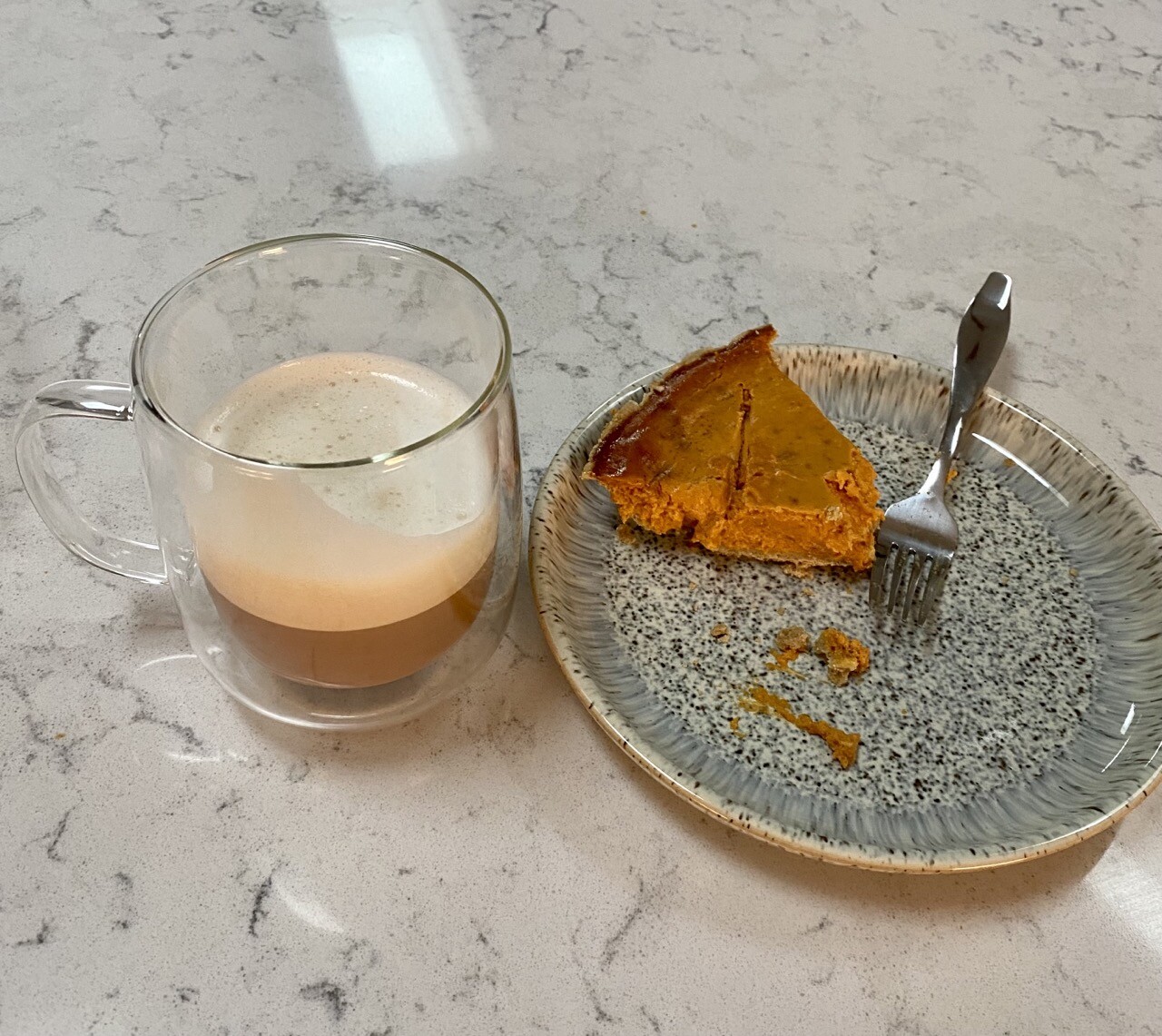 Morning! Today is the day for pumpkin pie breakfast! And a good cappuccino! Thankful for my oldest child who gifted me a homemade pie!! #PumpkinPie #cappuccino