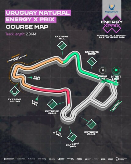 Extreme E uses natural terrain to form its course, so it will be a bit different every year. This is the 2.9km course that will be used for this weekend's Energy X Prix at Punta del Este, Uruguay.