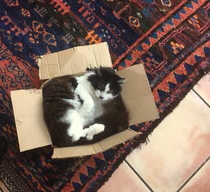 @prehensile So here is Tsu with summer haircut in #CraicHouse 2022 (note chewed box corners after frenetic sniffing of uncontrolled substance #catnip)--ordinarily (aka Winter), Tsu's hair has the more windswept look of your #moggie! #Cats #CatCraic #KrazyKatz #BoxClever #mastodon.ie #mastodoine #Pusskins (I have the permission of cat to use this photo)...