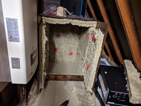 Managed to get my #Pylontech #batteries and new #HybridInverter up to the loft. Not easy considering each battery weighs 32 kg! Also checked they fitted ok in the cupboard I've built there. Plenty of space to put some insulation in to help keep the batteries from getting to cold (fire resistant of course!).