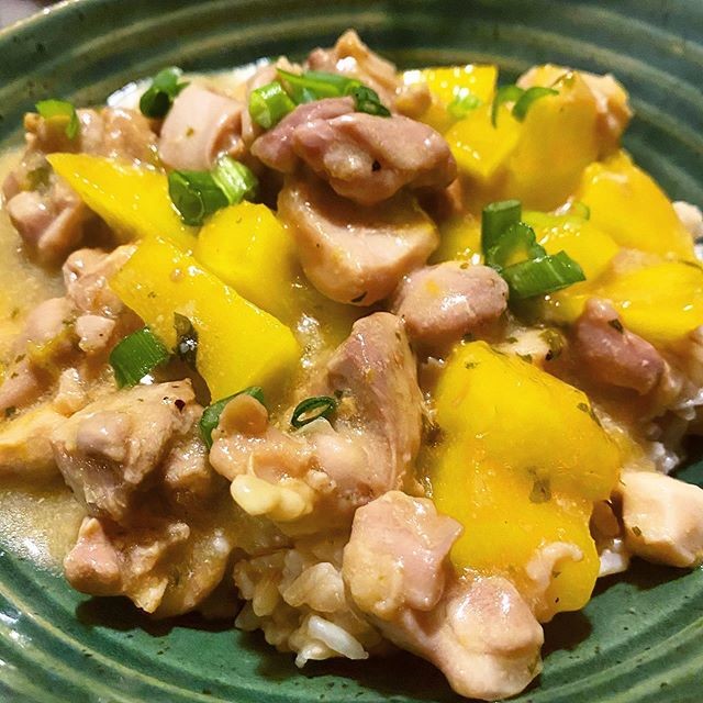 Haven’t made this before, but it pulled lots of random things I had around the kitchen together: mango chicken over coconut rice. #quarantinecooking