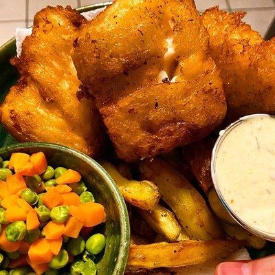 I popped on down to the pub for a spot of fish and chips. Or would have, if it were safe to do so and I had a pub to pop on off to. Had to do it all myself. #quarantinecooking