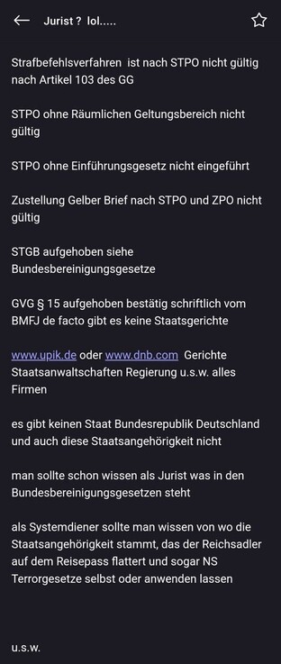 Die Polizei hat ihm dann erklärt das es #Quatschjura ist was er da erzählt und ein Busgeld verhängt 😂