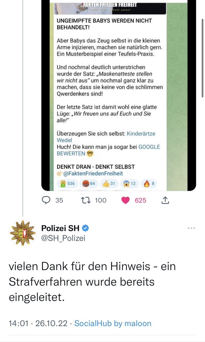 Die auf #QuatschJura spezialisierte Kanzlei #Haintz will nun halb Deutschland verklagen, weil @SH_Polizei@twitter.com getwittert hat, dass ein Strafverfahren eingeleitet wird 🤭