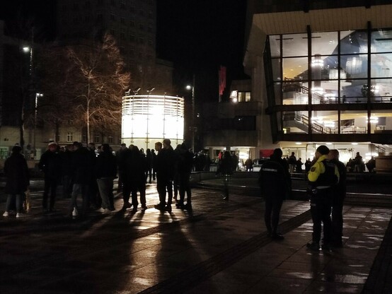 18:50 Ich berichte ab jetzt vom Augustusplatz in Leipzig. Erneut marschieren hier heute wieder Querdenker*innen auf.
