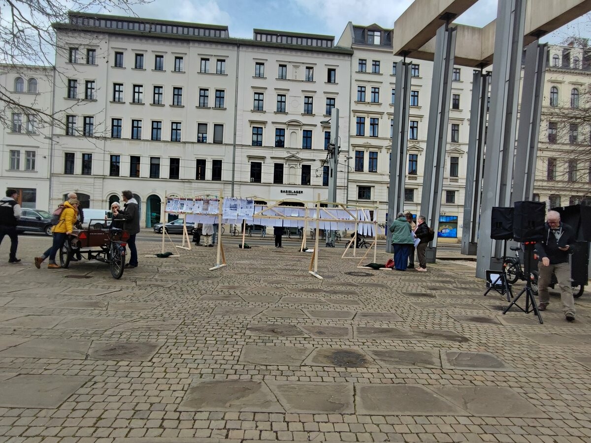 10:03 Vor dem LVZ-Gebäude in #Leipzig halten aktuell #Querdenken eine Versammlung ab.