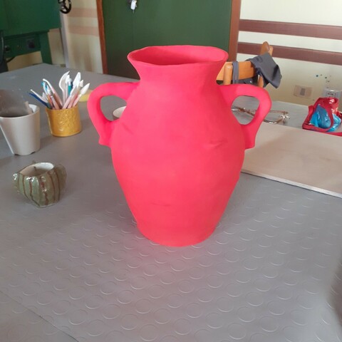 Questa รจ l'hydria Rosso Rabbia, realizzata in terra rossa smaltata da Paola Rapetti, che arriverร da Genova!