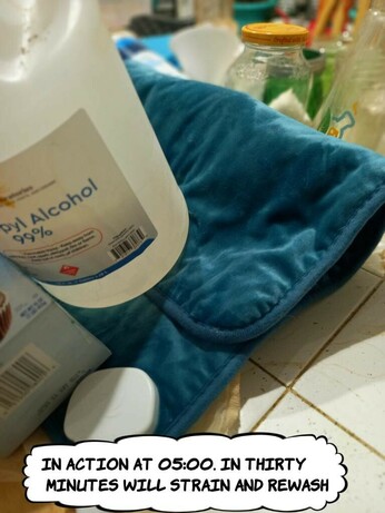 My science project. Step one of #RSO is to extract THC from the #cannabis. Normally I do it the... well normal way hand agitation for thirty minutes. Problem is, first it's you doing it so the air around it is 70 or better, plus you get tired and start doing it half assed. I was wondering what would what if I sat in a freezer and agitated it, would seem to turn out better. Then it dawned on me what might provide agitation for long periods of time with no air and in a freezer.
