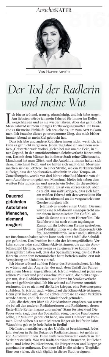 Danke Hatice Akyün für den Kommentar im #tagesspiegel: „Der Tod der #Radlerin und meine Wut“