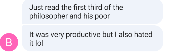 Fun thing with #ranciere is that I'm reading him en français, and my French (pardon) isn't too shabby. So I'm kind of learning French by reading contemporary French philosophy. It gives certain flavour to the learning process. Like, having read #ThomasBernhard with my novice Deustch, I recognize words like "er sagt" and "das ist Wahrheit". Learning languages the hard way: read books in a language you cannot.