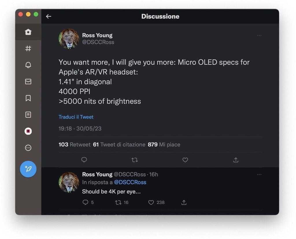 Trapelano dei dati riguardanti gli schermi presenti nel casco #RealityPro che saranno presentati alla #wwdc23