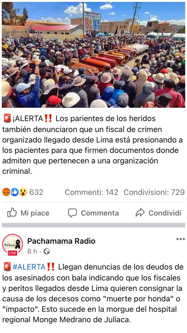 #Peru | Il giorno successivo al massacro mentre Juliaca piange i 17 manifestanti uccisi dalle ffaa, il governo criminalizza le vittime e fa pressione sui feriti perché firmino false autodenunce.