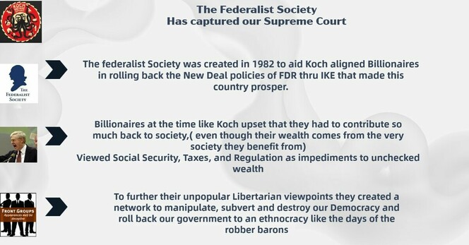 Few understand how The Federalist Society is the Koch/Billionaire judicial wing and much more