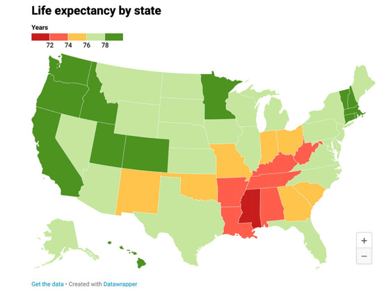 As far as I'm concerned, this map is a graphic illustration of π©ππ difference between the parties. The Republican dominated states have notably shorter life expectancies. This is the ultimate policy outcome. #DemVoice1 #ResistanceUnited #ProudBlue #ONEV1 #wtpBLUE