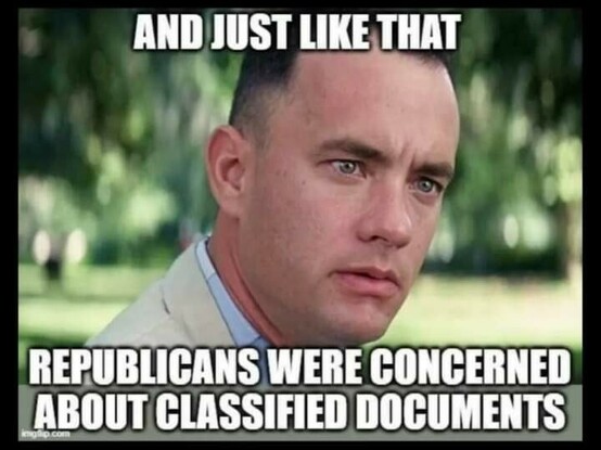 Isnβt it rich that Republicans are so vocal about the dozen or so documents found from Biden & they are not upset about the 300+ documents trump took to FL. Biden is cooperating, trump is suing every step of the way. See the difference?