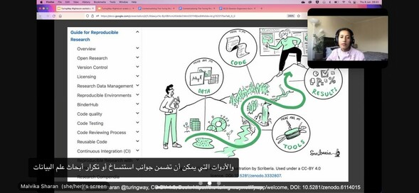 Happening now! Starting us off, @malvikasharan shares the origins of The Turing Way, and the importance of reproducibility in scientific research. https://twitter.com/turingway/status/1533801411909193731