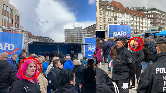 Anfang März fand bereits eine Demo unter gleichen Motto von gleichen Veranstaltenden statt. Dort zeigten sich auch extreme Rechte wie Nathali #Rihm und Sandra #Steppke