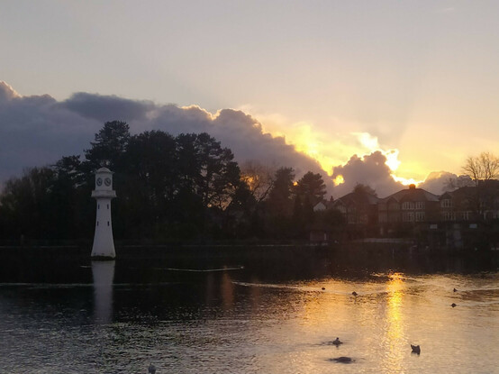 Roath Park Lake in #Cardiff a couple of days ago. On the left is the Robert Scott Memorial Lighthouse - built to commemorate the explorer's 1910 departure from Cardiff for Antarctica and his death after reaching the South Pole.