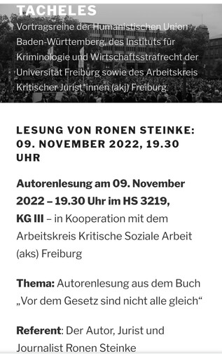 #Veranstaltungstipp: Lesung aus dem Buch "Vor dem Gesetz sind nicht alle gleich" mit #RonenSteinke.