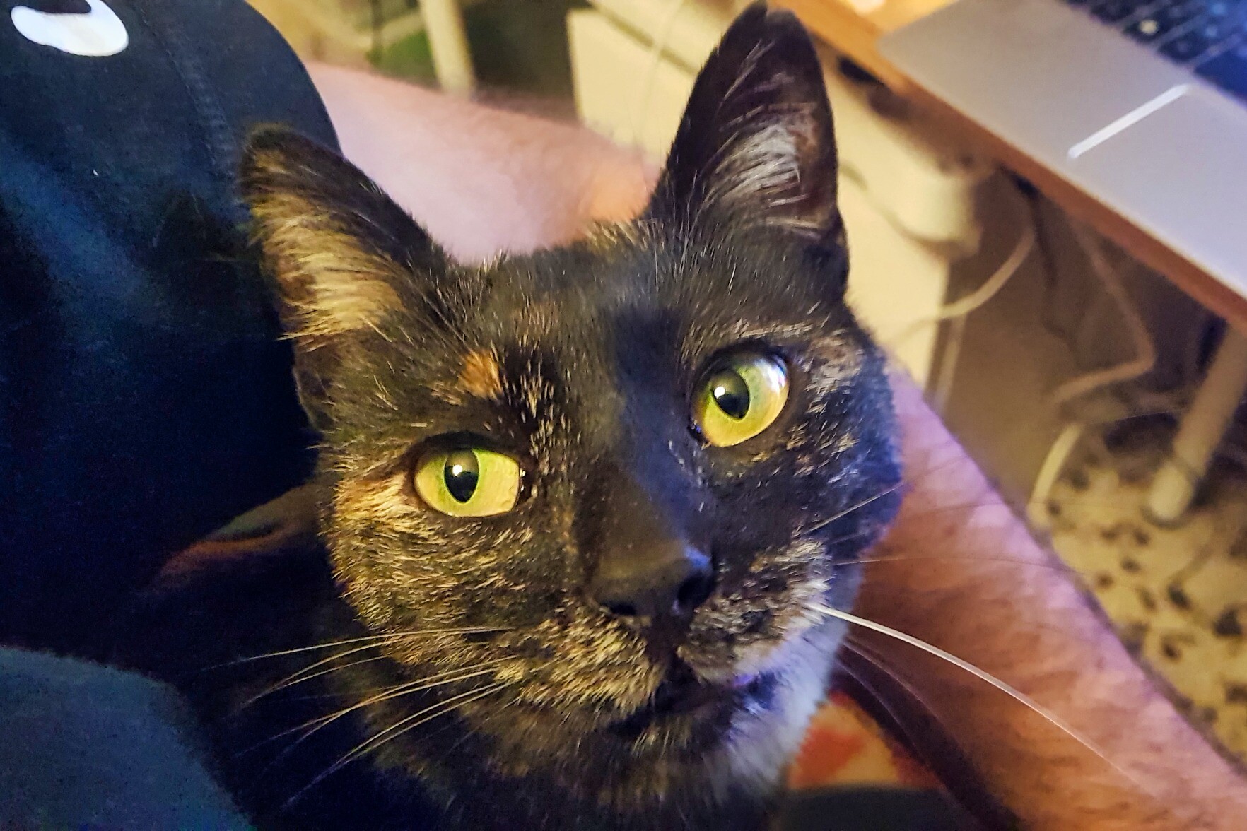 After nearly 3 months away, I'm finally reunited with #RubiaTheCat.