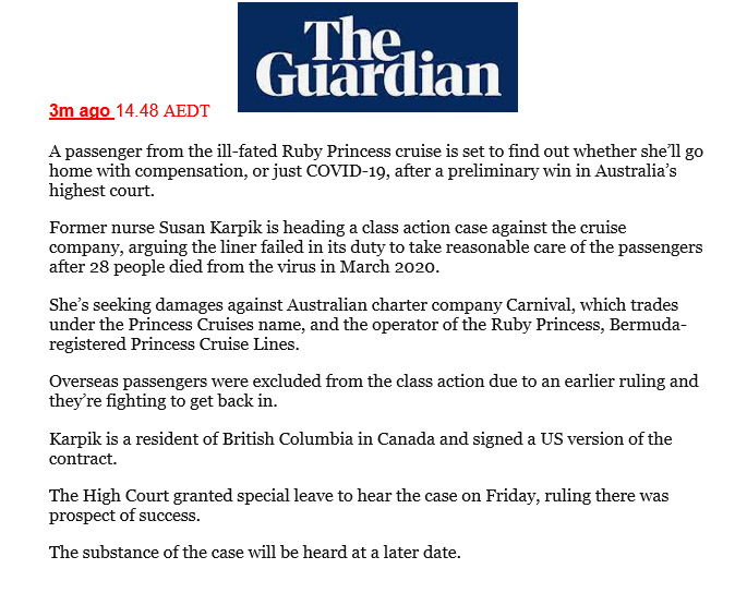 Wow, how quickly the media has forgotten. Here’s a reminder of the #RubyPrincess scandal, where 900 passengers were infected and 28 people died.