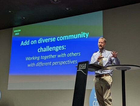 Listening to Michael Meeks of @CollaboraOffice at #SFSCon explaining how one of the challenges of digital sovereignty is sustainably funding #OpenSource while maintaining the full promise of #Software Freedom.