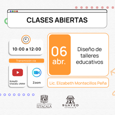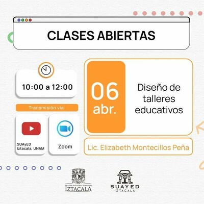 Hoy 10:00 Clase abierta: Diseño de Talleres Educativos. https://www.youtube.com/c/FESIztacalaUNAMmx/