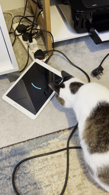 Even my cat is intrigued by #lineageos loading on my #samsunggalaxytab S3, 😃