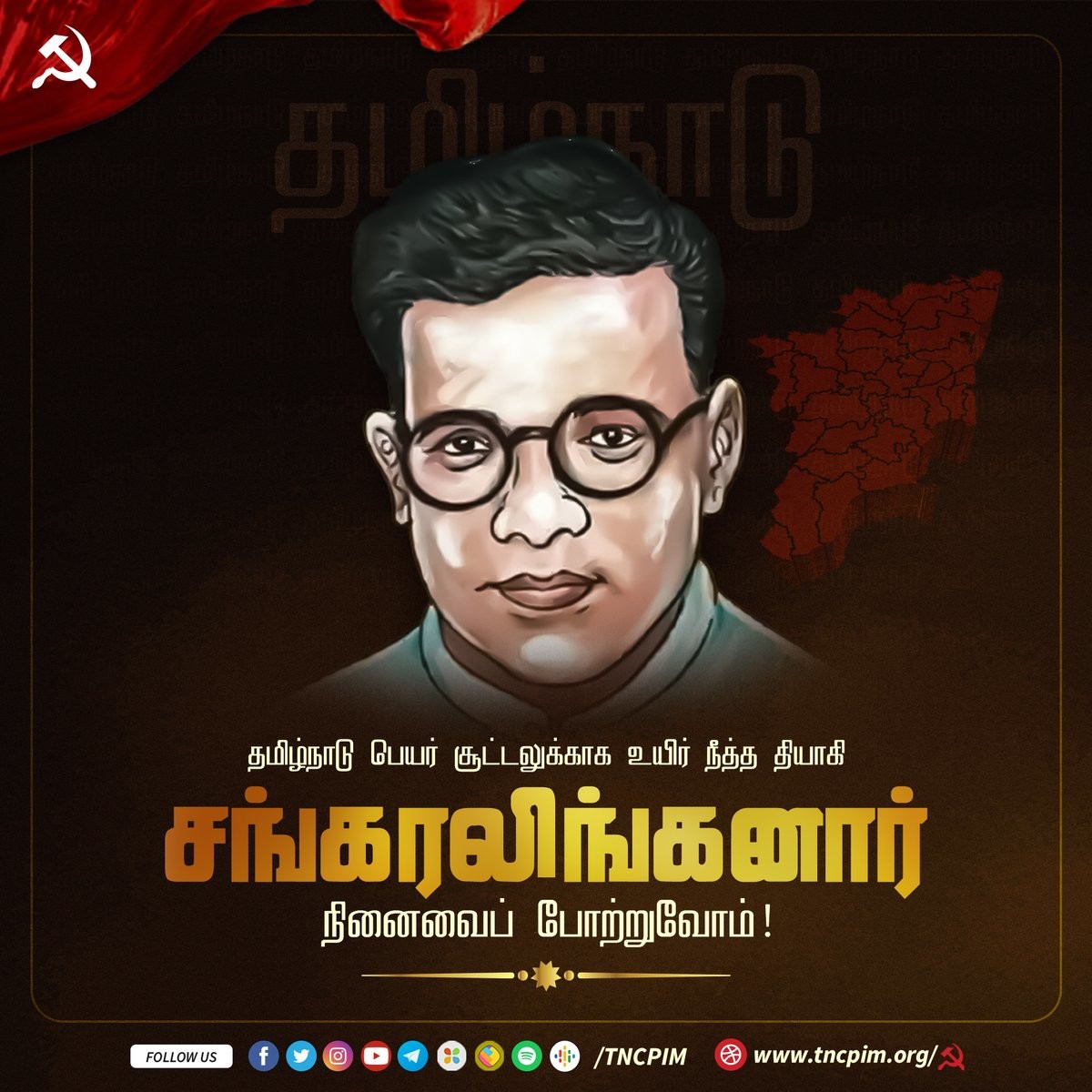 தமிழ்நாடு பெயர்சூட்டலுக்காக உயிர் ஏந்திய தியாகி சங்கரலிங்கனார் நினைவைப் போற்றுவோம்! #SankaraLinganar #Tamilnadu #Communist #TamilNaduNameChange