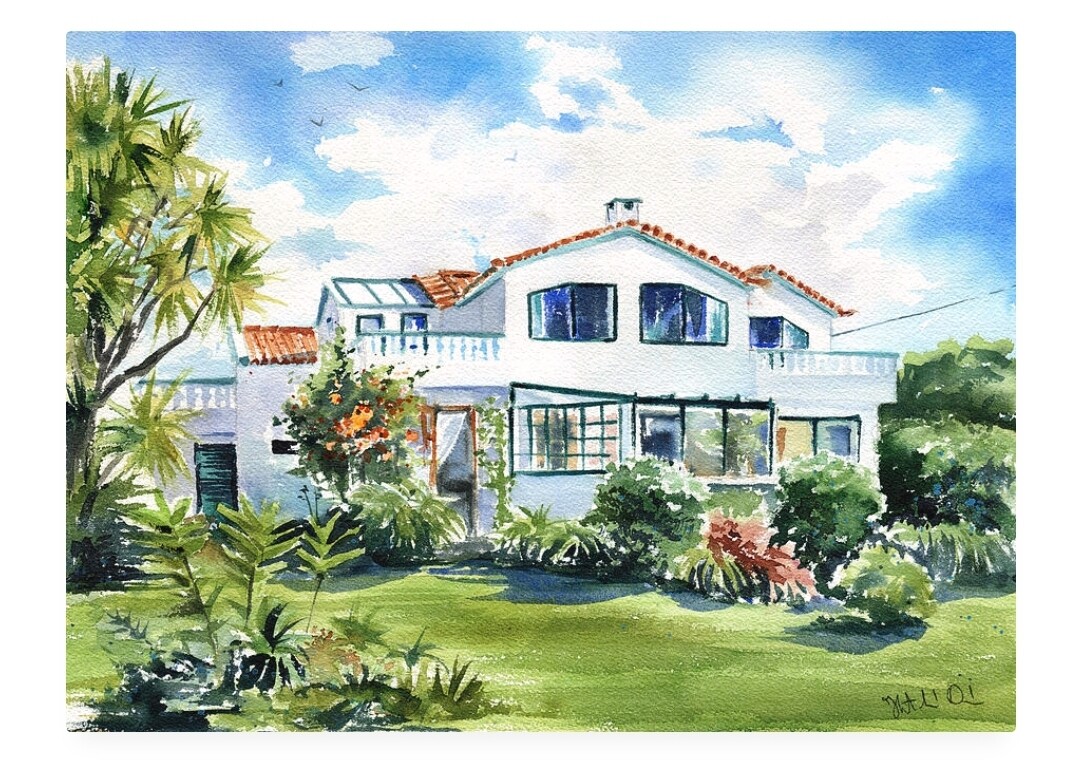 The original watercolor commissioned painting, about an old family house in Pilar Da Bretanha, Azores Sao Miguel island in Portugal is on the way to the US.