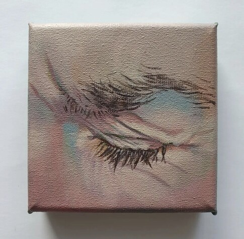 Goedemorgen. Deconstructed portrait of the artist nr. 4. Acrylverf op canvas, 10 x 10 cm: โฌ 150,-