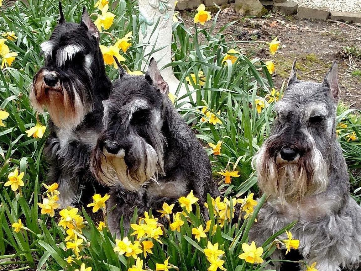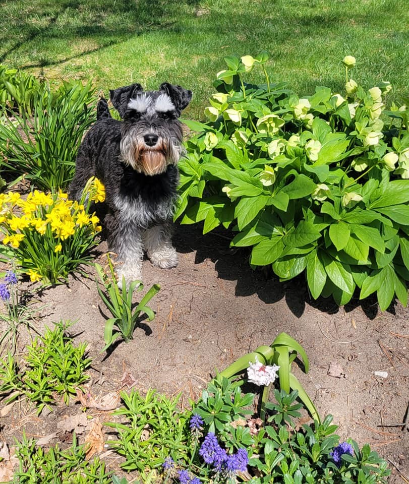 Some extra cute flowers sprung up in the daffodil patch! #dogs #dogsofmastodon #Schnauzer