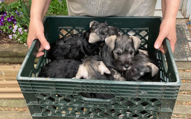 I spy with my little eye, a lot of cute schnauzer puppies to play with! #dogs #dogsofmastodon #Schnauzer