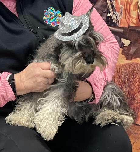 I declare it to be silly hat day! #dogs #dogsofmastodon #Schnauzer