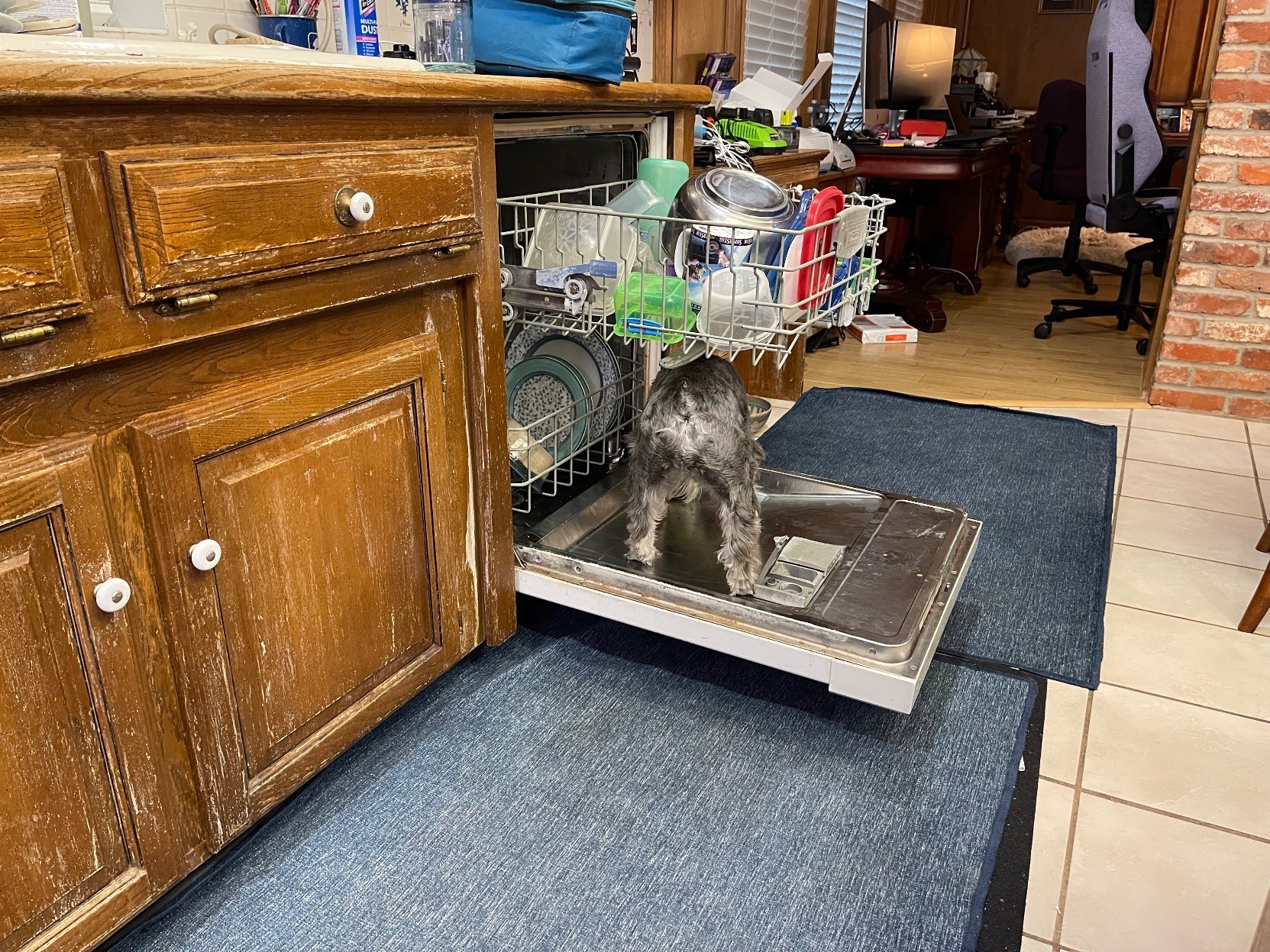 This dishwasher got a new pre-clean cycle. Does yours have one too? #dogs #dogsofmastodon #Schnauzer