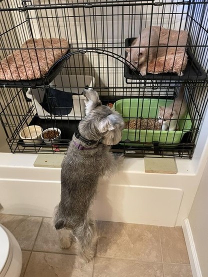 Kitty cat, will you play with me? #dogs #dogsofmastodon #Schnauzer