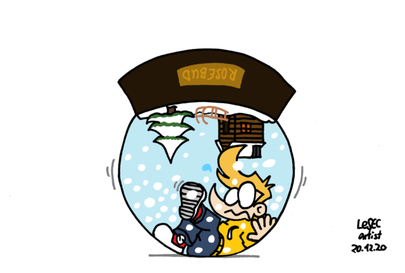 #kleinekunstklasse #illustration #comic #snowglobe #rosebud #Weihnachtskugel #Schneekugel #weihnachten #adventskalender