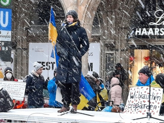 Trotz miserablem Wetter: Volle Unterstützung für die #Ukraine durch @EFDavies@twitter.com und viele andere heute auf dem Marienplatz #Muenchen. 👍💙💛🇺🇦👍