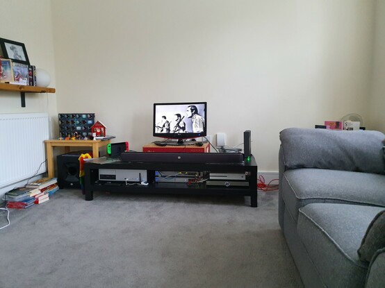 Lounge is looking a little bare as the TV's been taken to the new house for the electrician's to mount before we move in on Wednesday.