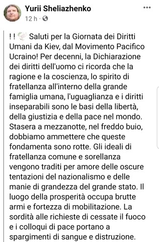 Yurii #Sheliazhenko (Movimento Pacifista Ucraino) da #Kiev sulla giornata di oggi, ricorrenza internazionale per i #dirittiumani