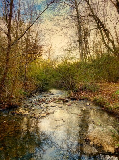 Mill Creek flows through an undeveloped stretch of woods between two neighborhoods in Madison, Alabama. It gathers water from urban runoff as it slowly winds its way to join with other small streams and enter the Tennessee River.