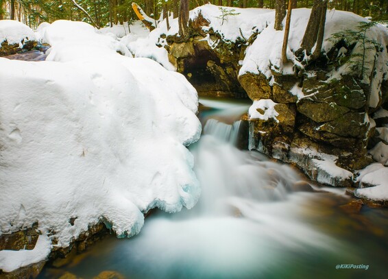 I love taking waterfall photos, but there is something special about taking them up in the White Mountains, in New Hampshire. The water is so intensely blue. #waterfalls #waterfall #water #photo #photography #photos #landscape #landscapephotography #NH #NewHampshire #WhiteMountains #hiking #snow #shutterspeed #SlowShutter #winter #NewEngland