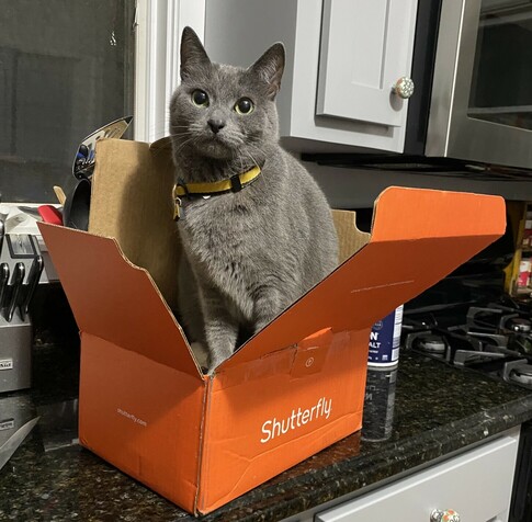 RBG is excited about the arrival of Christmas cards (she knows she is a star)! #Caturday #catsofmastadon #shutterfly
