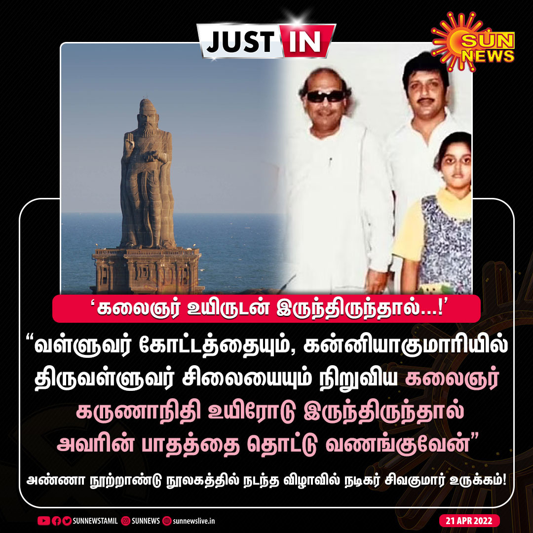 #JUSTIN | "கலைஞர் கருணாநிதி உயிரோடு இருந்திருந்தால் அவரின் பாதத்தை தொட்டு வணங்குவேன்” - நடிகர் சிவகுமார்
