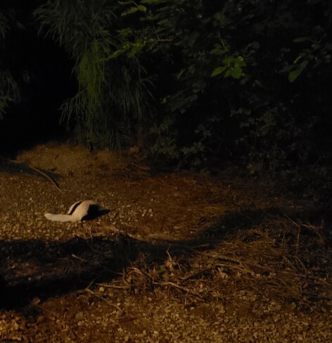 So in other wildlife news, I went to take out the garbage, and it turns out one of the neighborhood #skunks is back to visit.